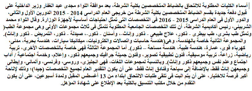 تفاصيل قبول دفعة الضباط المتخصصين 2016 من الاطباء في اكاديمية الشرطة 2016 واهم شروط التقديم خمس خطوات