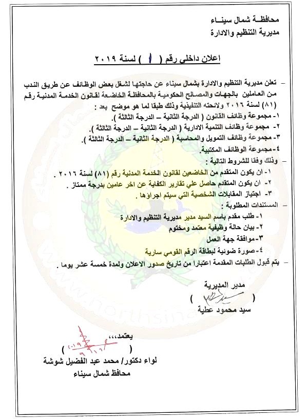 تعلن مديرية التنظيم والادارة عن النتيجة الموقع الرسمى لمحافظة شمال سيناء Facebook
