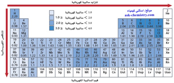 اشرح تدرج السالبية الكهربية فى الدورات والمجموعات فى الجدول الدوري اسألني كيمياء