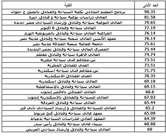 الكليات المتاحة لدبلوم سياحة فندقى 2020 والحد الادنى للقبول بالكليات والجامعات