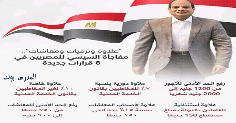 بالأرقام علاوات وترقيات ومعاشات يوليو 2019 للمصريين هدية من السيسي