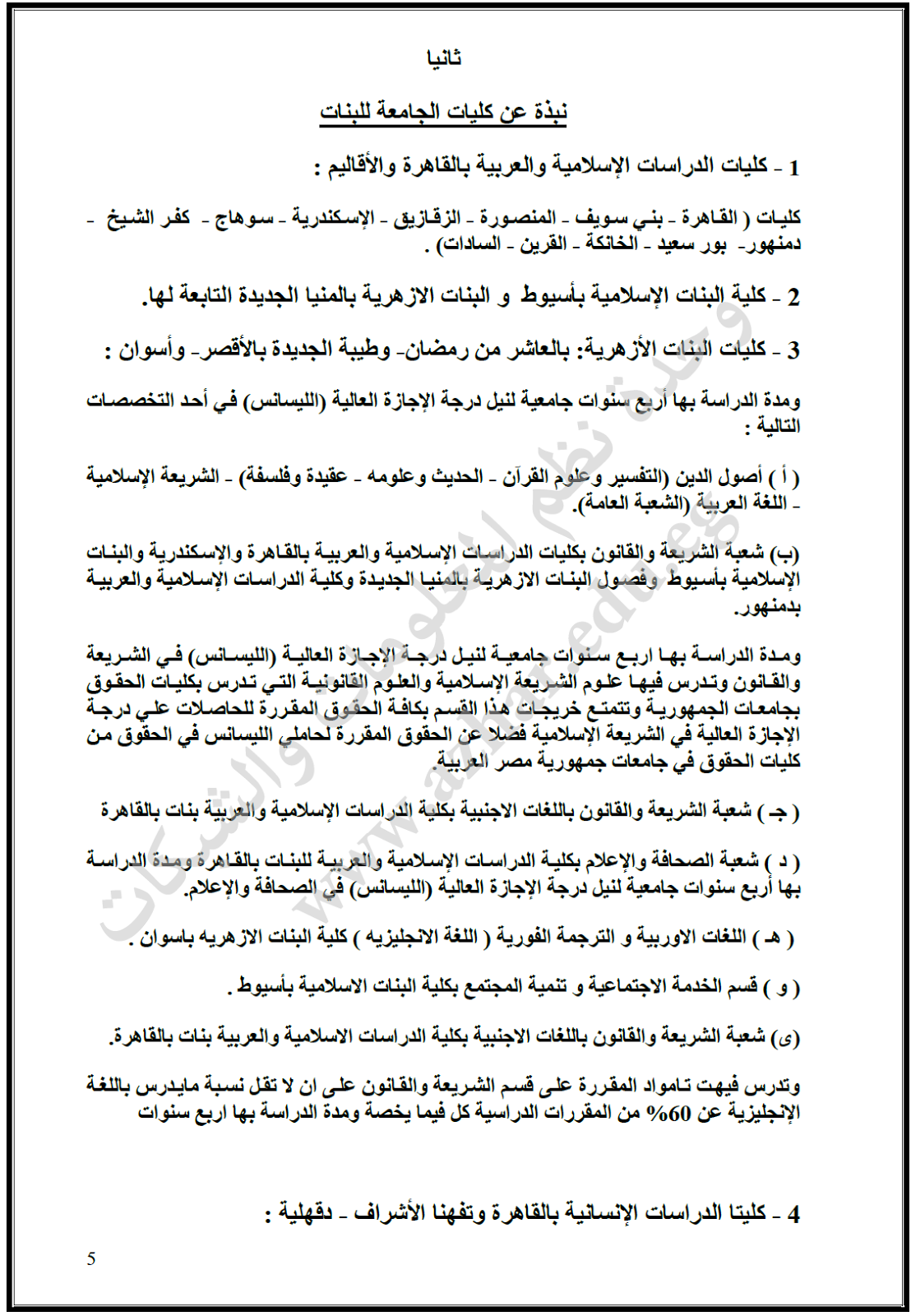 دليل القبول بكليات البنات بجامعة الازهر لعام 2018 2019
