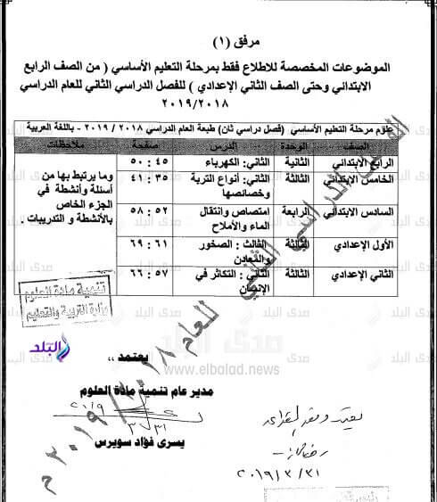 المحذوف فى العلوم الرابع والخامس والسادس ترم ثانى 2019
