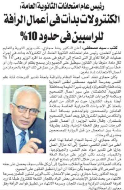 رئيس امتحانات الثانوية 2020 الكنترولات بدأت في أعمال الرأفة للراسبين في حدود 10