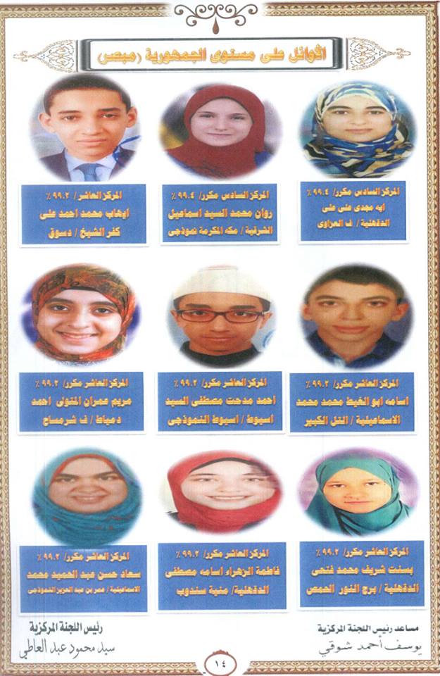 العشرة الاوائل فى الشهادة الاعدادية 2017 بالشرقية