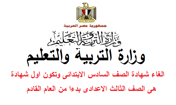 وزارة التربية والتعليم الغاء شهادة الصف السادس الابتدائى وتكون اول شهادة هى الصف الثالث الاعدادى بدءا