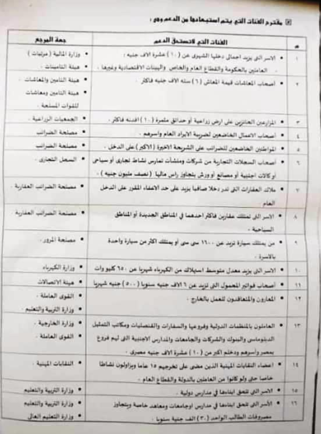ننشر الفئات المستبعدة والتى سيتم حذفها من البطاقات التموينية واسباب حذفها خلال الثلاث شهور القادمة