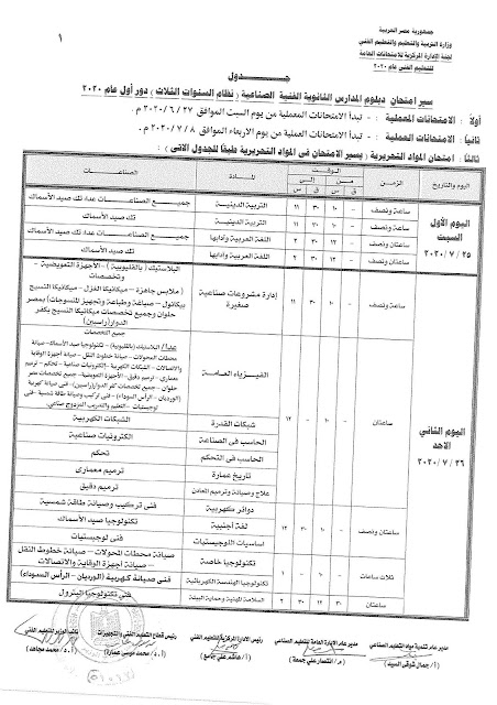 جداول امتحانات الدبلومات الفنية الصناعية نظام ثلاث سنوات إعداد مهني الدمج 2020 صباح مصر