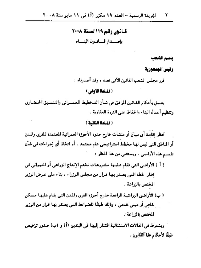 قانون البناء الموحد 119 لسنة 2008 Pdf