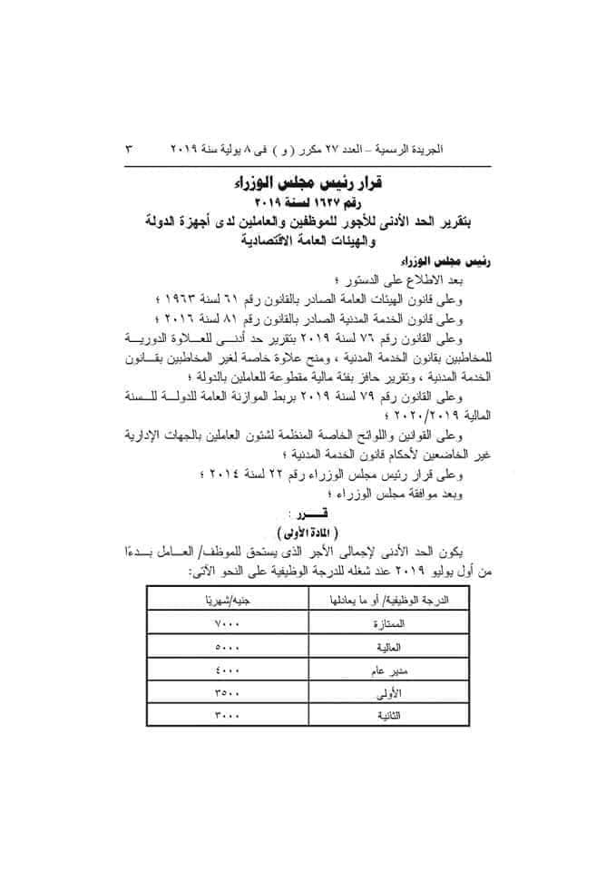 اللائحة التنفيذية للحد الادنى للاجور 2019