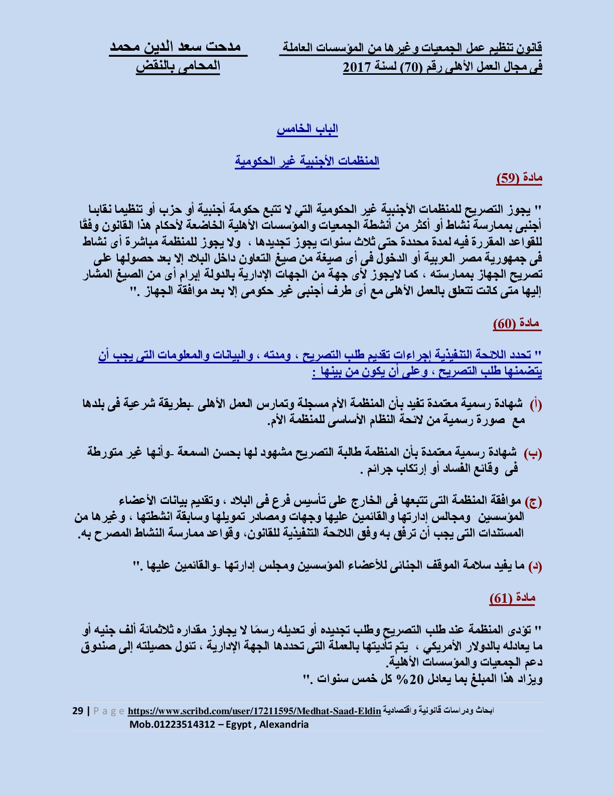 Pdf المستجد من أحكام وإجراءات تأسيس وتوفيق أوضاع الكيانات الأهلية المصرية وفقا للقانون 70 لسنة 2017 Ahmed Hishmat Academia Edu