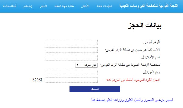 اللجنة القومية لمكافحة الفيروسات الكبدية فيروس سي للحجز والاستعلام