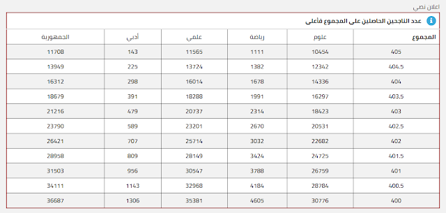 صدى البلد ننشر المجمع التكراري الصاعد لمجاميع طلاب الثانوية العامة