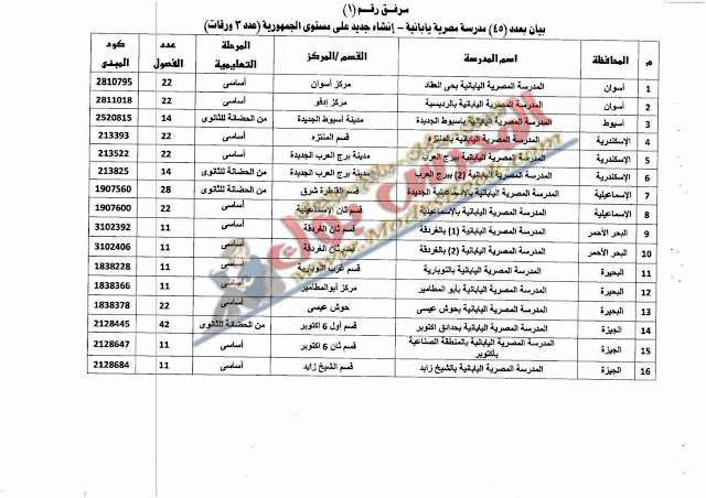 تعرف على عناوين 40 مدرسة يابانية بمختلف المحافظات أي خدمة الوطن