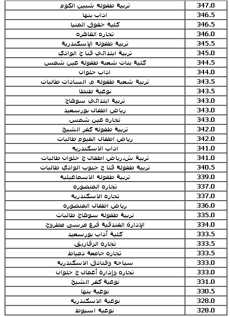 الكليات المتاحه لطلاب المرحلة الثانيه للثانويه العامه 2018 علمى وأدبى شاهد كليات القمه المتاحه