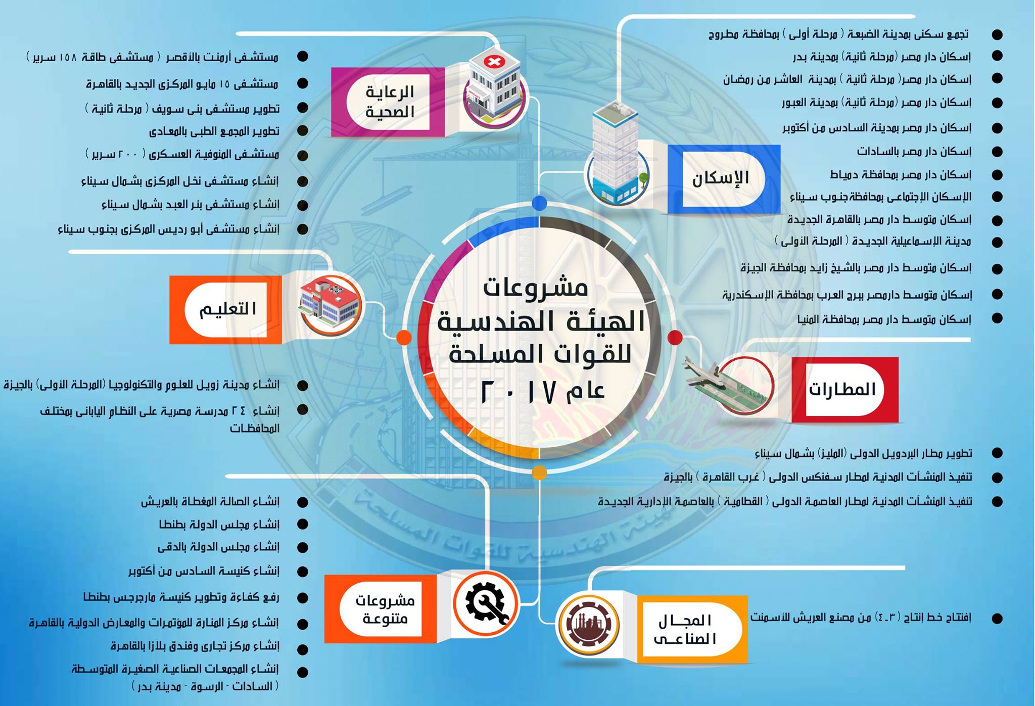 إنفوجراف مشروعات الهيئة الهندسية للقوات المسلحة خلال عام 2017 معلومات مباشر