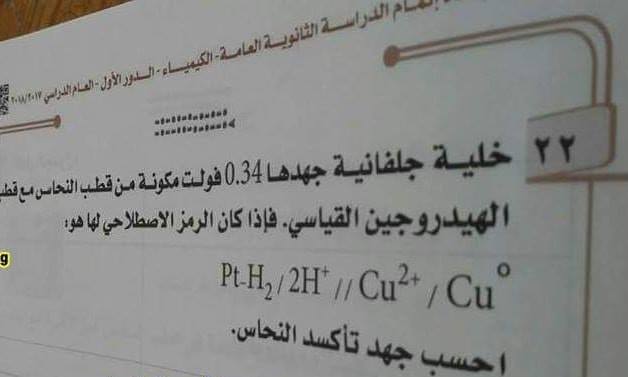 امتحان الكيمياء للثانوية العامة دور اول 2018 مع الاجابات المسربة