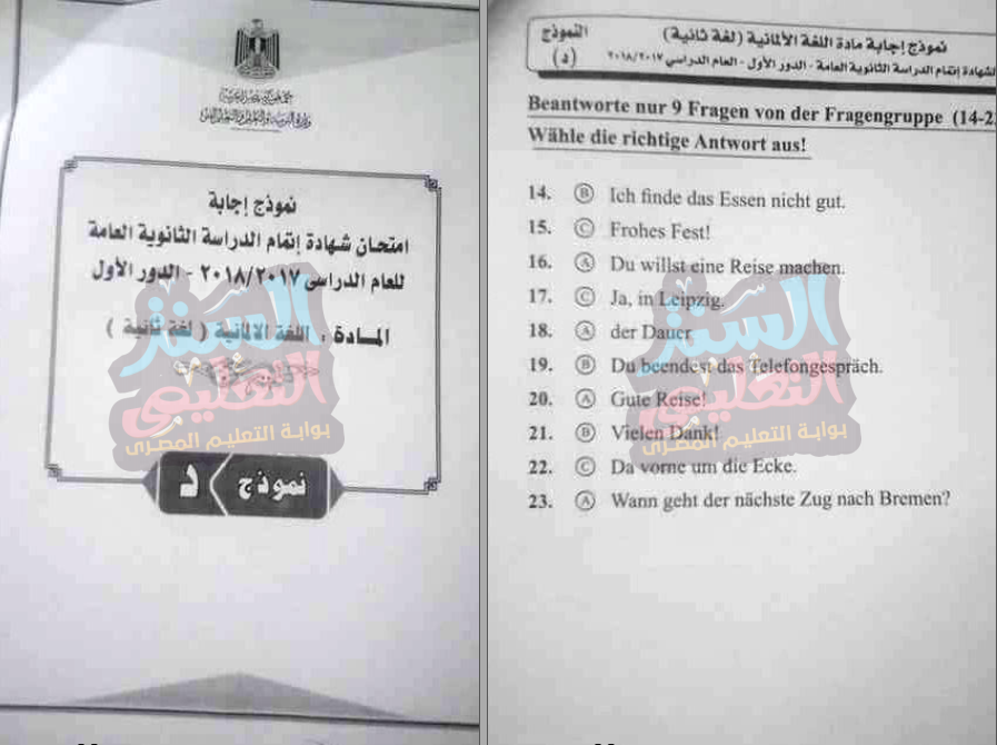 اجابة امتحان اللغة الالمانية للثانوية العامة دور اول 2018 الرسمى من كنترول