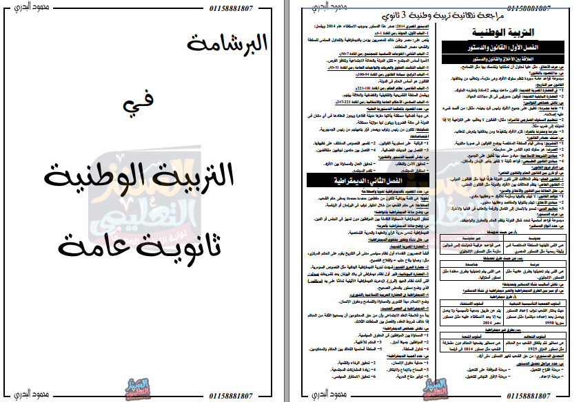 مراجعة ليلة امتحان تربية وطنية في صفحة ثالث ثانوي 2016