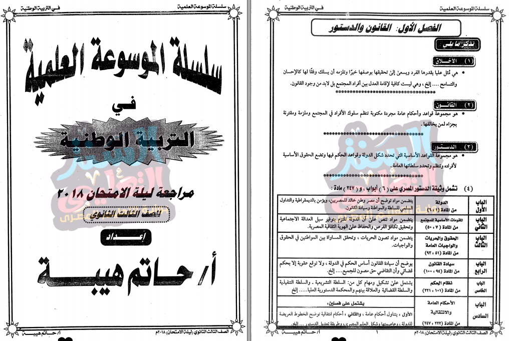 مبادرة عايزين نتعلم ملخص التربية الوطنية فى 9 صفحات للثانوية العامة 2018
