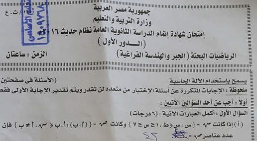 كالعادة تسريب امتحان الجبر والهندسة الفراغية لطلاب الثانوية الأزهرية للقسم العلمي