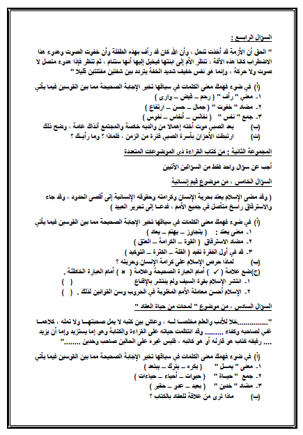 امتحان اللغة العربية نظام قديم 2016