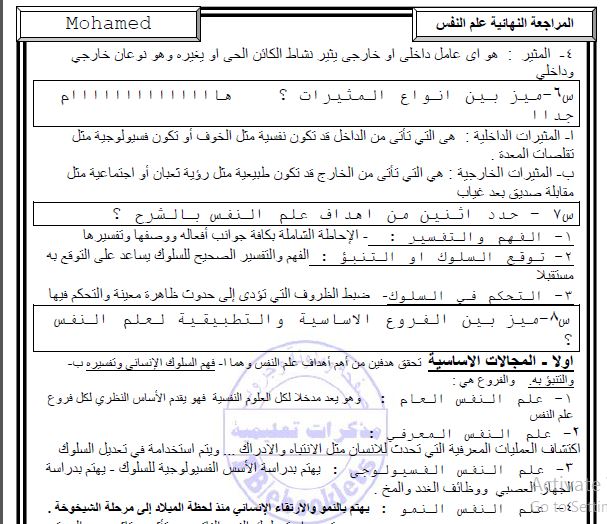 امتحان الوزارة في علم النفس والاجتماع 2017 للصف الثالث الثانوي بنظام البوكليت مدرسة اون لاين