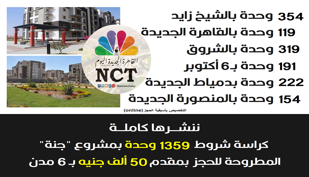 القاهرة الجديدة اليوم 61 صفحة مكبرة وواضحة ننشر كراسة شروط 1359 وحدة بمشروع جنة المطروحة للحجز بمقدم 50 ألف ج بـ6 مدن على رأسها القاهرة الجديدة المرحلة السادسة من مشروع دار مصر المعدل