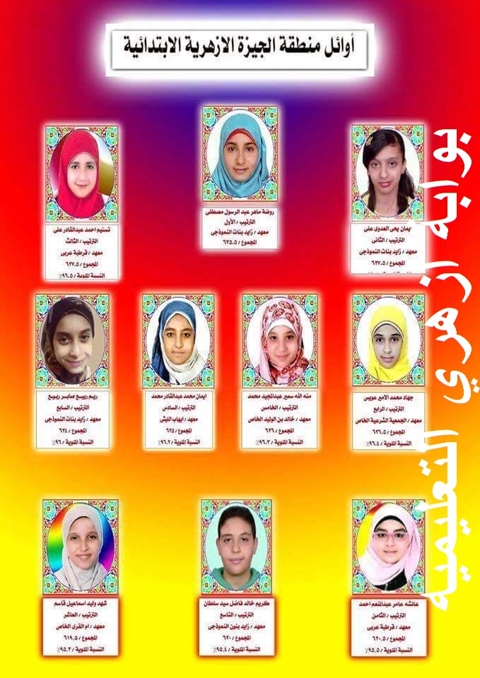 اوائل المرحلة الإبتدائية بمنطقة الجيزة الأزهرية