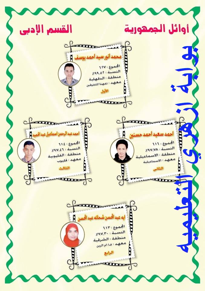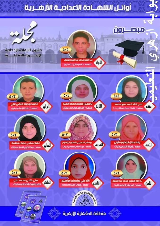 ننشر أسماء العشرة الأوائل فى الشهادة الابتدائية الأزهرية بالدقهلية المنصورة
