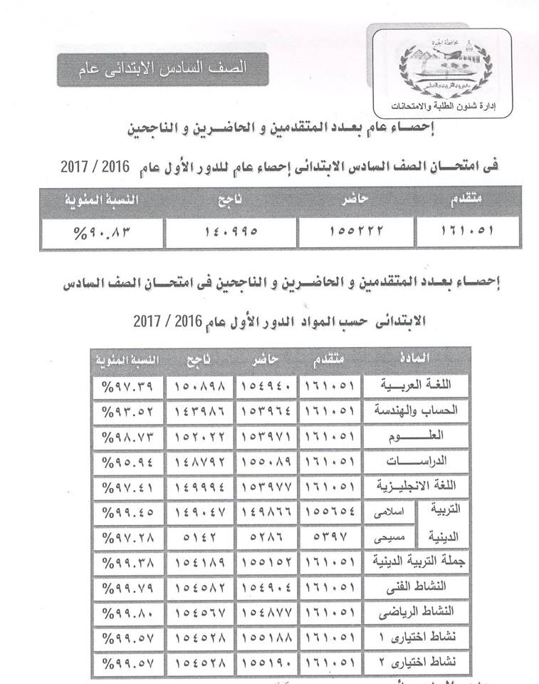 ننشر أوائل الشهادة الابتدائية بالجيزة والرابط الجديد للنتيجة